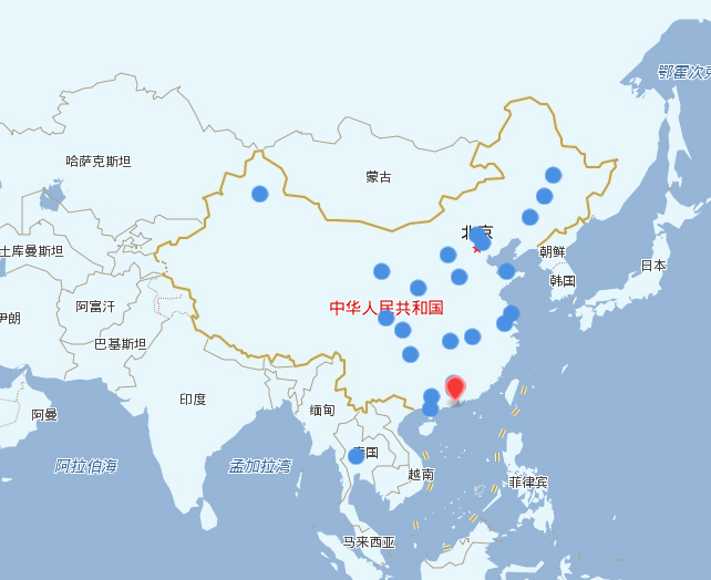 北京 天津 青島 重慶 杭州 沈陽 長沙 中山 太原 蘭州 南昌 長春 福泉 海口 湛江 昆山 廣漢 曼谷 珠海 廣州 衛輝 西安 哈爾濱 烏魯木齊